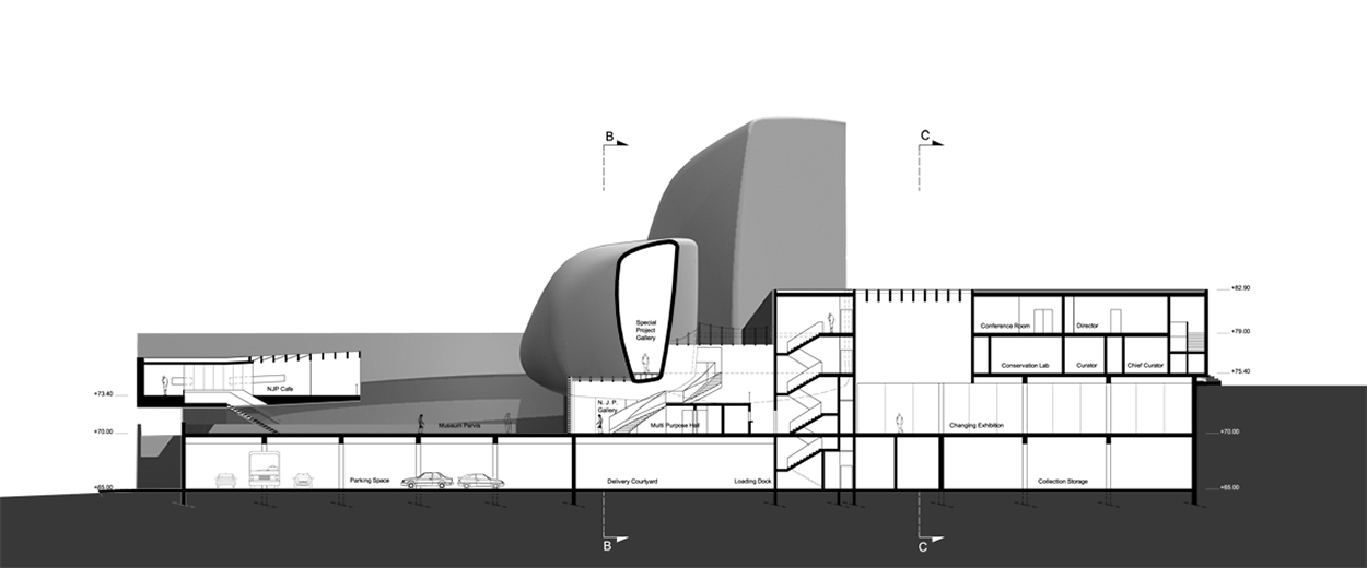 Program Permanent and temporary exhibitions, ressources and archives center, entrance room, administration