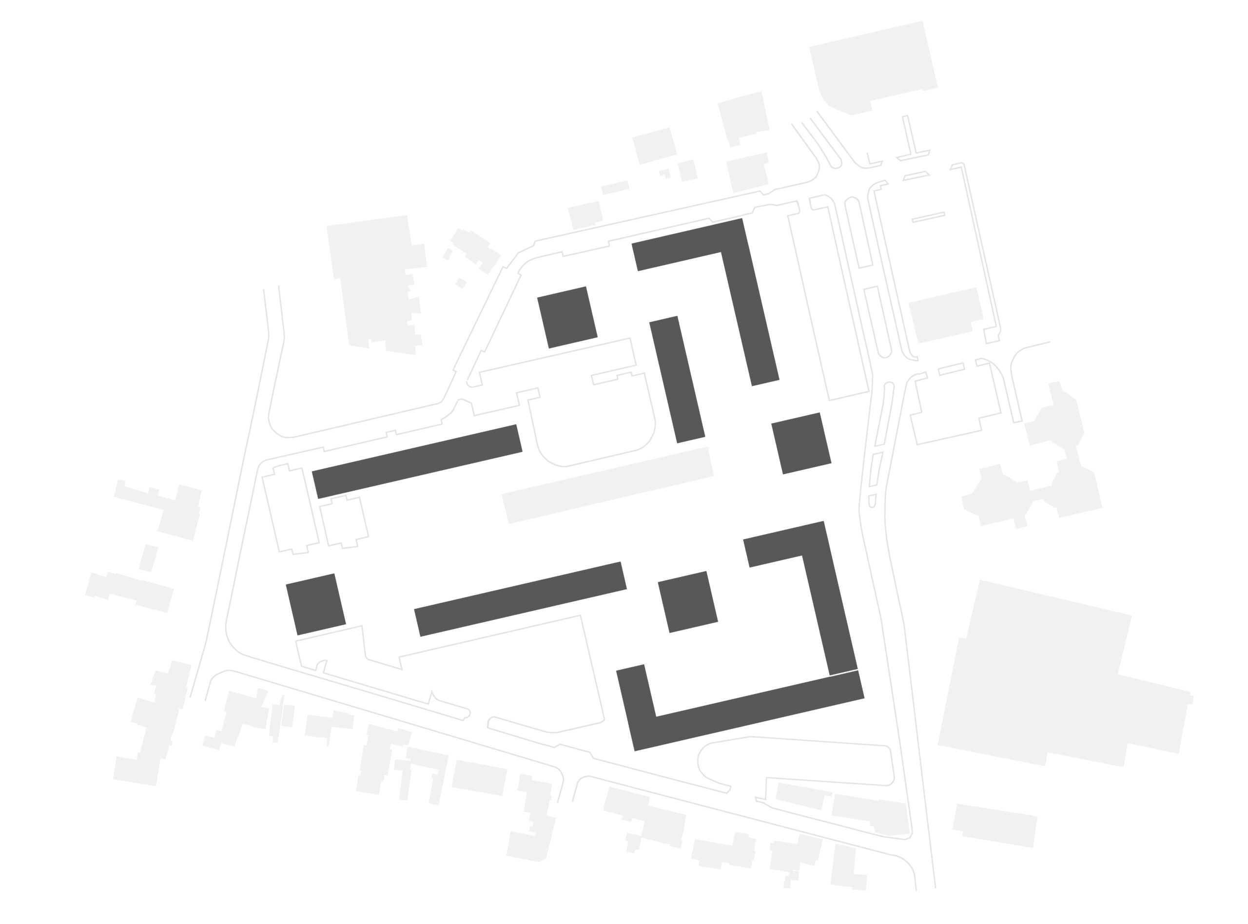L’analyse du plan masse existant fait clairement apparaitre un « cardo » axe nord-sud à travers l’avenue Ferdinand Buisson, réelle colonne vertébrale du quartier, un « decumanus » axe est-ouest composé par l’artère piétonne.