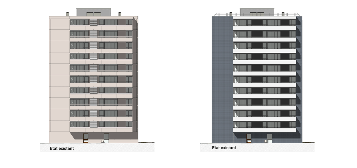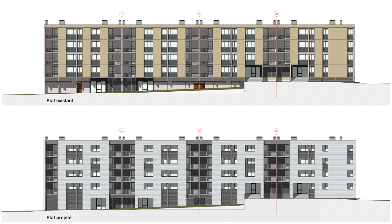 Le projet de Réhabilitation de l’îlot Maurice Thorez s’inscrit dans une dynamique de renouveau à plusieurs échelles. L’opportunité de métamorphose des façades nous a amené naturellement à en reconsidérer leur lecture, pour permettre une réécriture totale du quartier sur trois axes majeurs : urbain, paysager, identité architecturale.